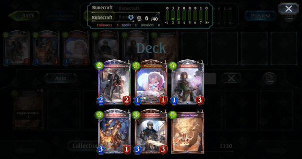 Against Rally Sword try your best to minimize damage and ideally copy Anne with Arcane Duplication. Authoring Tomorrow on even turns is very good in this matchup. It is okay to use Grea’s spell to clear boards especially if they invoked Fieran. They will usually always have a board so use Crystal Witch and Covenant Mage to cycle instead of saving them to Rending Blast. Against Bayleon Sword they usually can kill you faster than you can kill them. Anne is not always a reliable ward to counteract it unfortunately. Try to keep your health high as sometimes they are only able to deal eighteen damage. Grea’s spell can be used to kill Leod in either matchup which can be very useful.